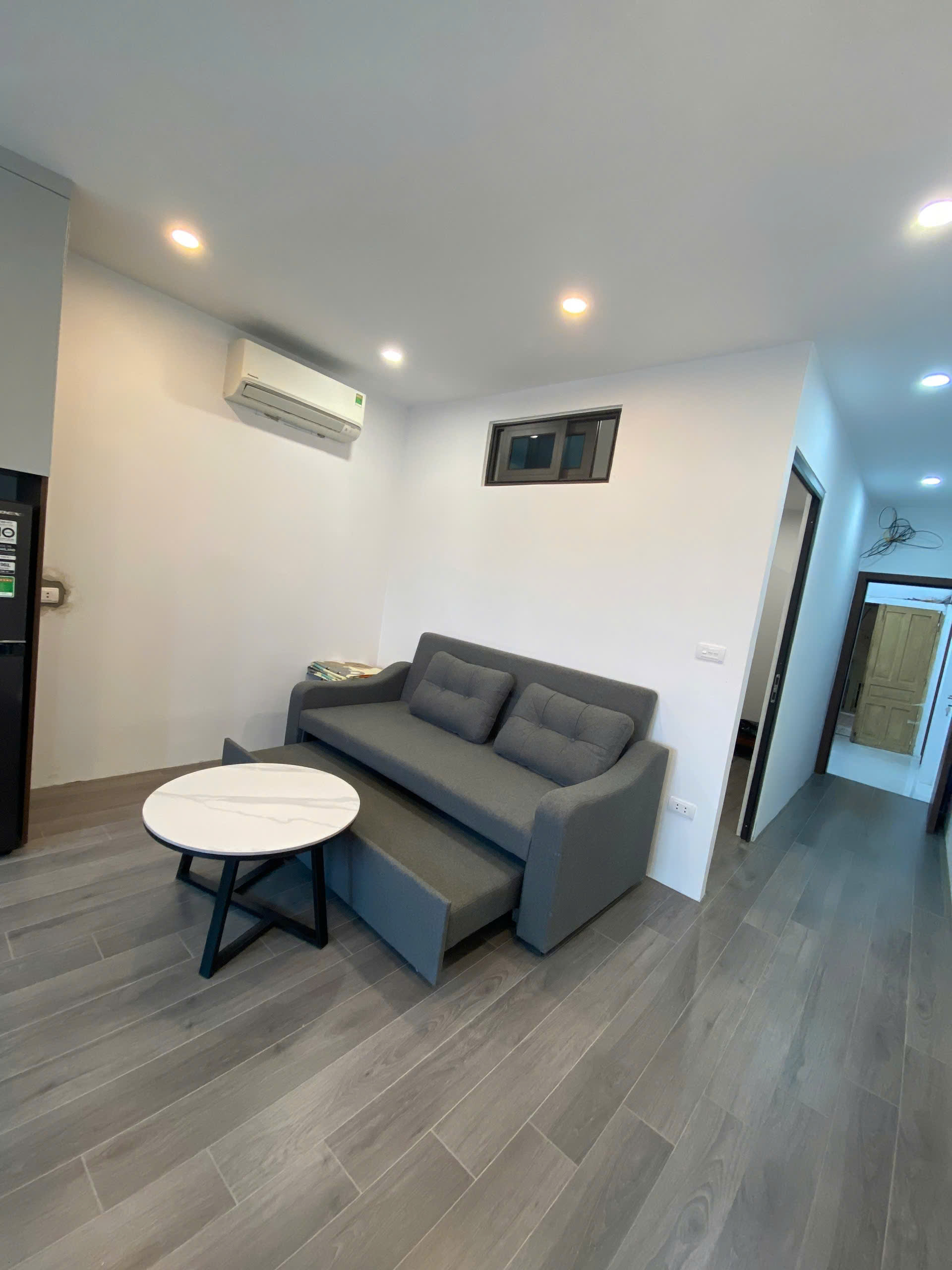 Căn hộ diện tích 40m², thiết kế 1 phòng ngủ – 1 phòng khách, nằm tại tầng 6, thang bộ rộng rãi, sạch sẽ.
